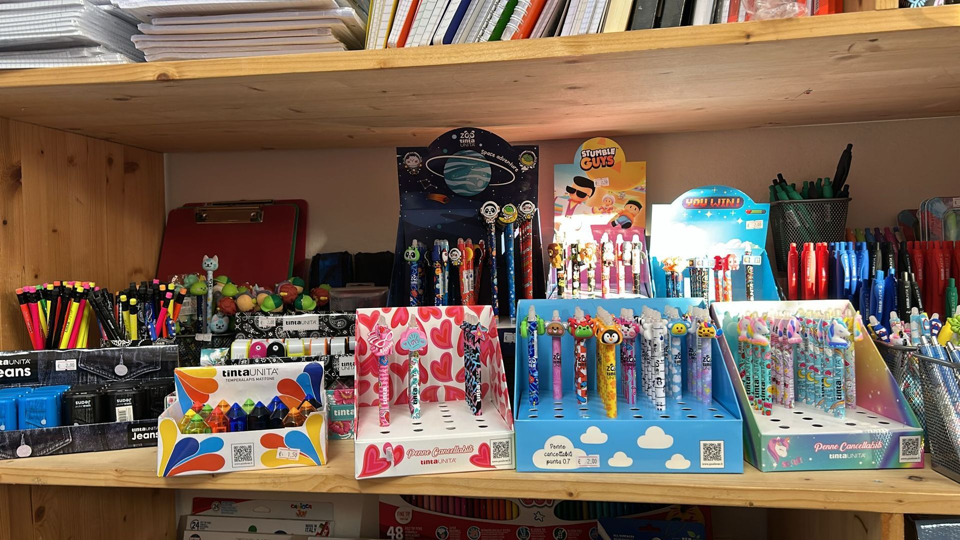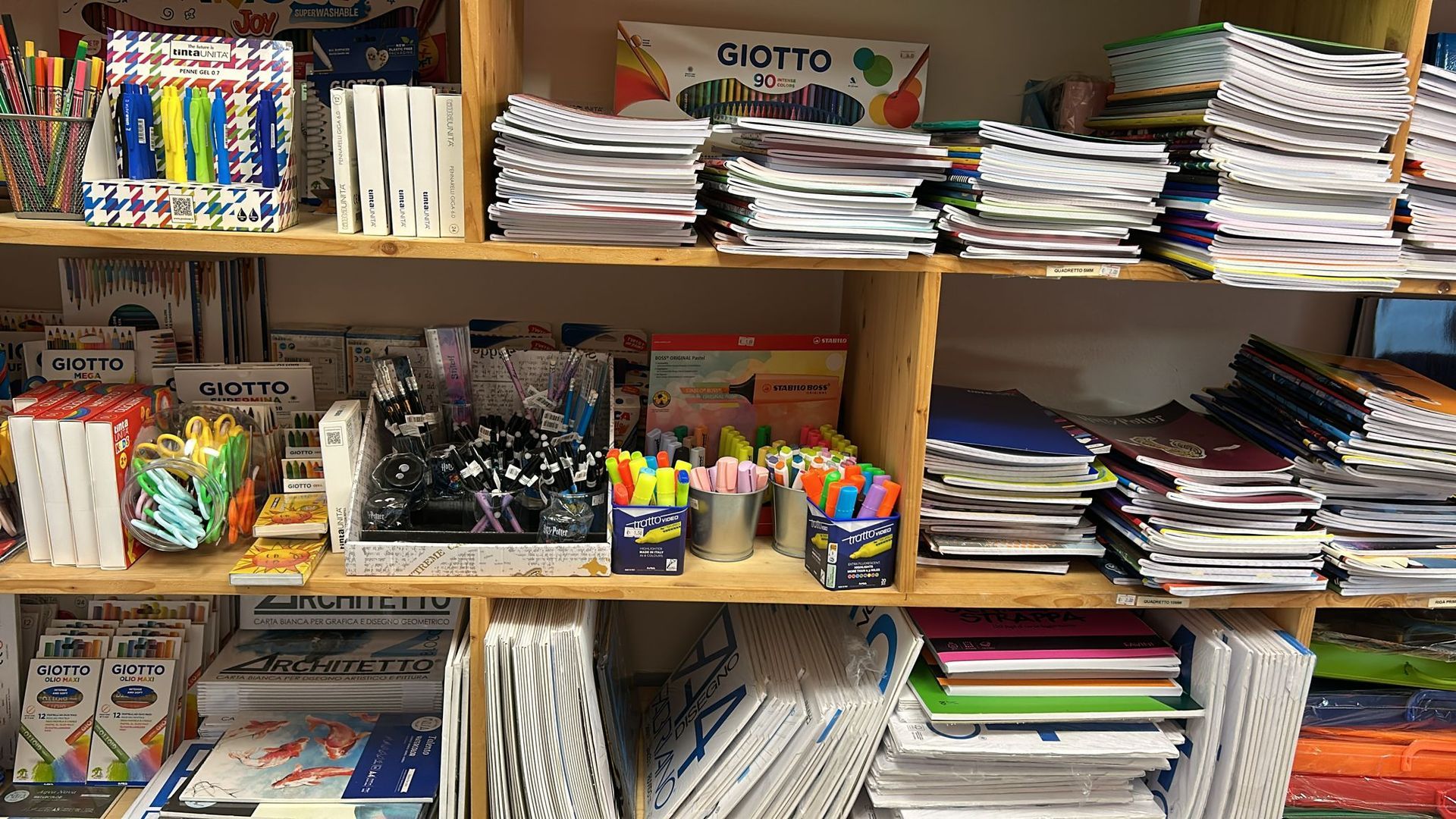 Per studenti di ogni età mettiamo a disposizione una vasta gamma di prodotti: quaderni, quadernoni, penne, matite, pennarelli, gomme, colla, cartelline, compassi, righelli, squadre, acquarelli, tempere, pennelli da disegno, pennelli sintetici, forbici, evidenziatori e molto altro ancora. Il materiale perfetto per affrontare l’anno scolastico con tutto il necessario, dalla prima elementare fino alla maturità.